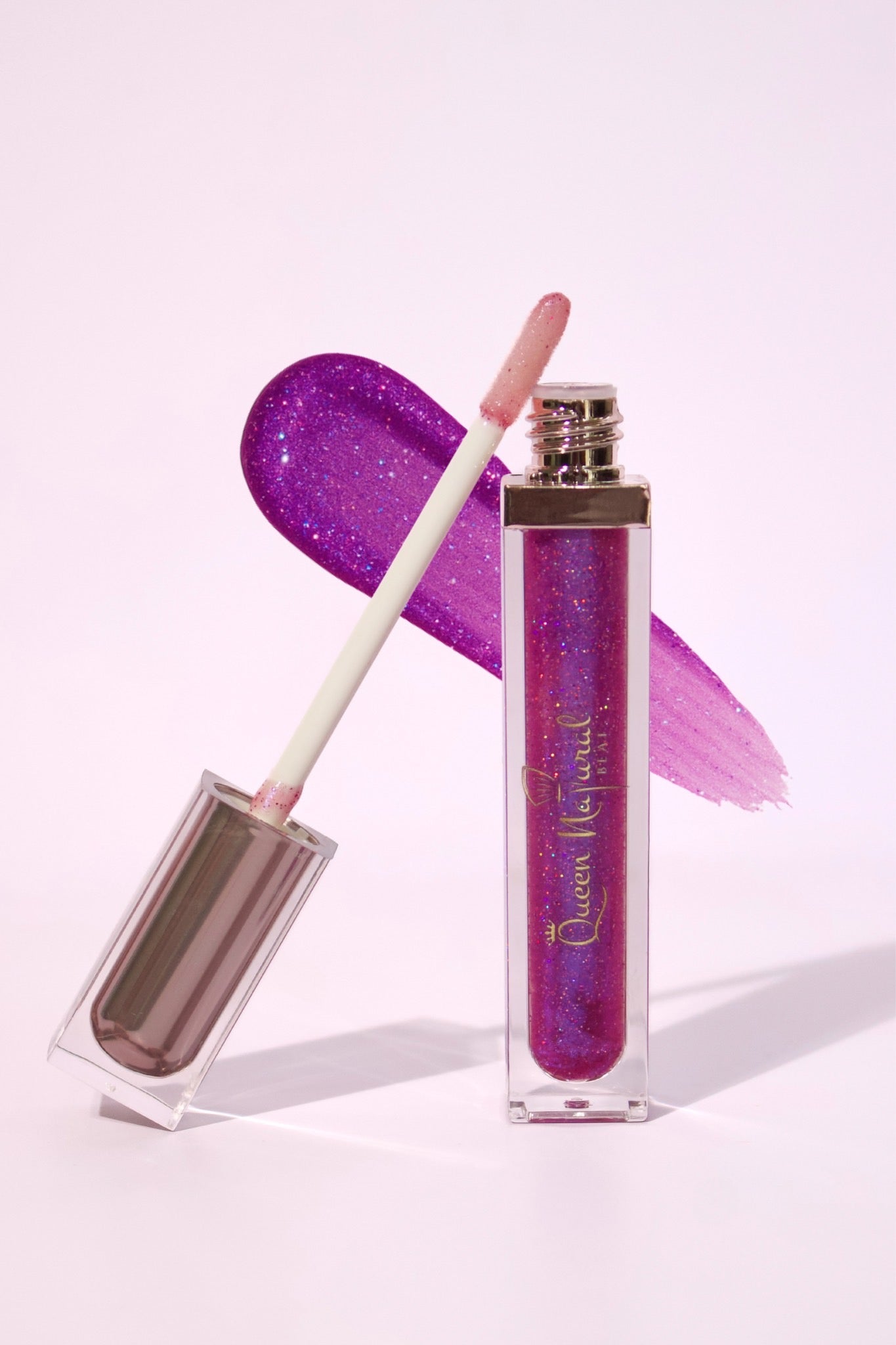 Purple tinted glittery gloss (can’t feel glitter)
